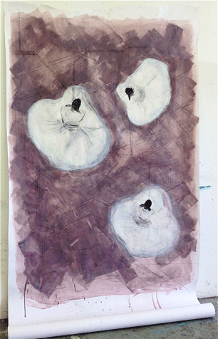 1.50mt x 3.50mt Acryl en houtskool op papier.